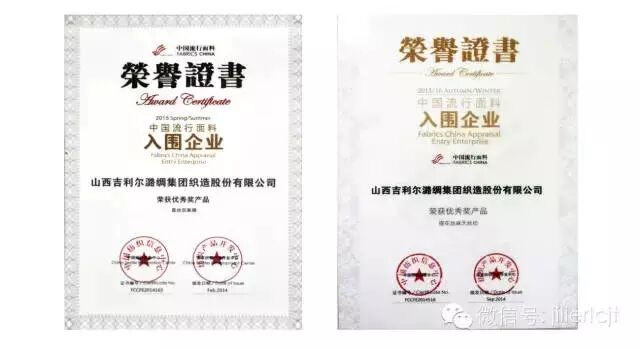 吉利尔潞绸集团研发生产的新潞绸面料再次入选中国流行面料