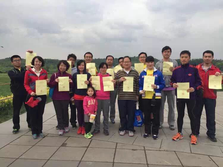 当天的雨中健步走活动,有16位老乡及家属参与,有竞速独行的,有母女同行的,也有志愿当裁判的。毛毛雨中,大家均坚持下来。这已经成为这个团体一贯的精神。可以看到,老乡们有统一着装,成绩优异者还获得了证书。细致、体贴,也是组织者一贯的可贵之处。