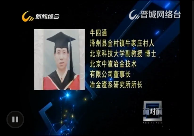 晋城电视台《面对面》系列访谈之:北京科技大学副教授牛四通