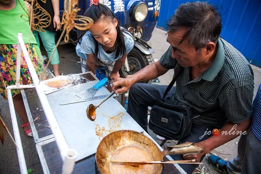 吹糖人、画糖人的技艺让孩子们好奇。