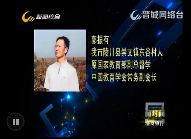 6月9日晚,晋城电视台《面对面》栏目“在北京的晋城人”系列访谈第六期播出,嘉宾是原国家教育部副总督学、中国教育学会常务副会长郭振有先生。